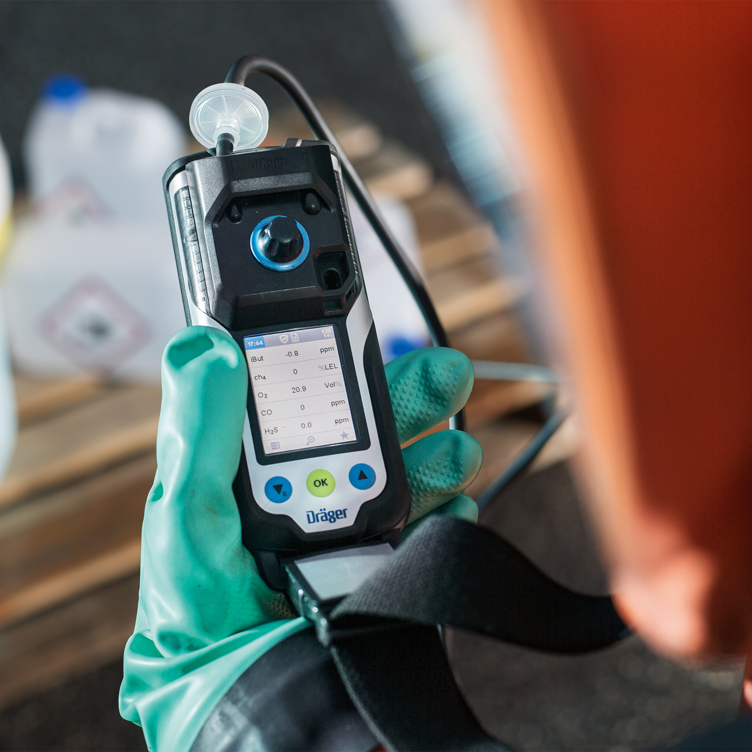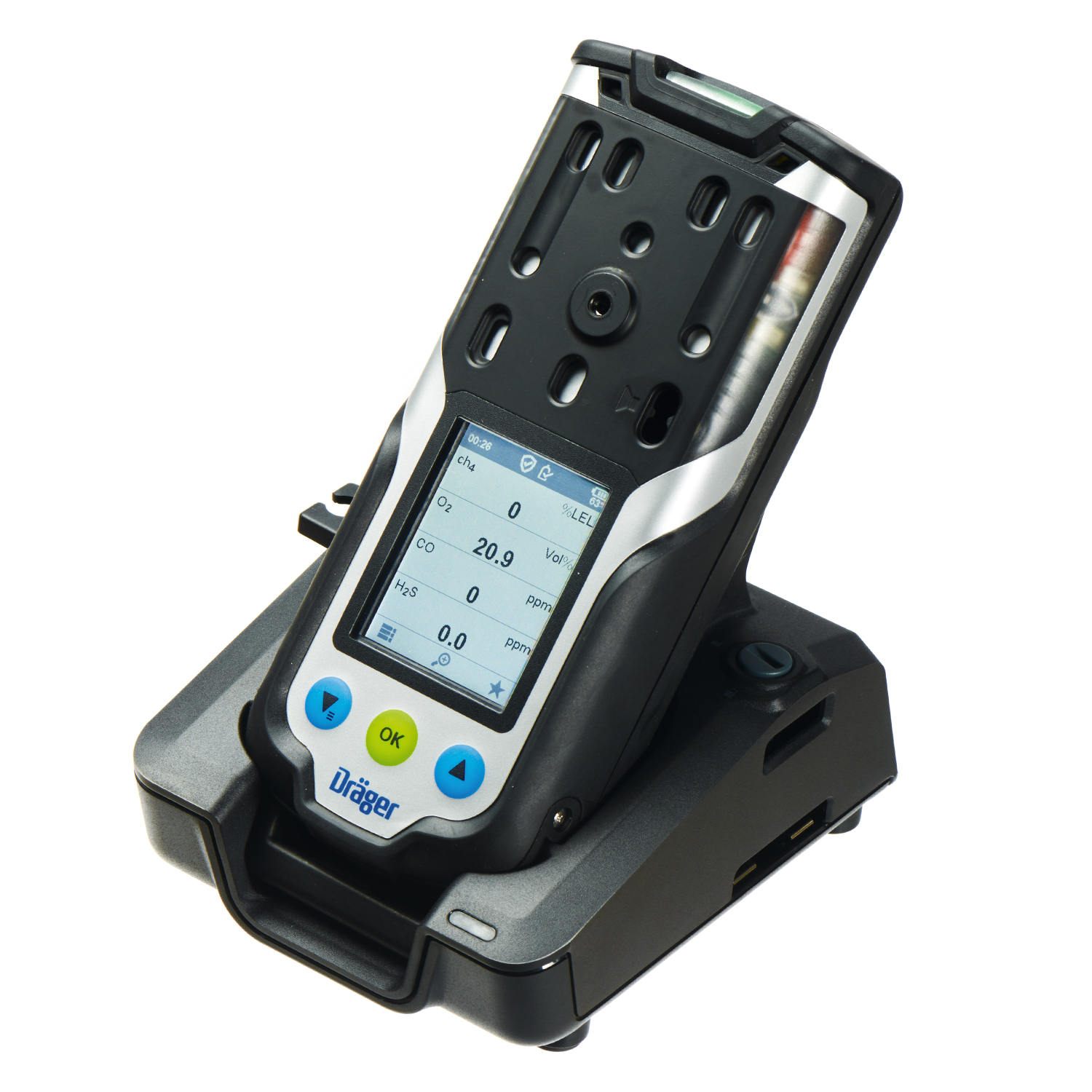 Das Gasmessgerät Dräger X-am 8000 mit Ladetechnik misst toxische und brennbare Gase, sowie Dämpfe und Sauerstoff gleichzeitig