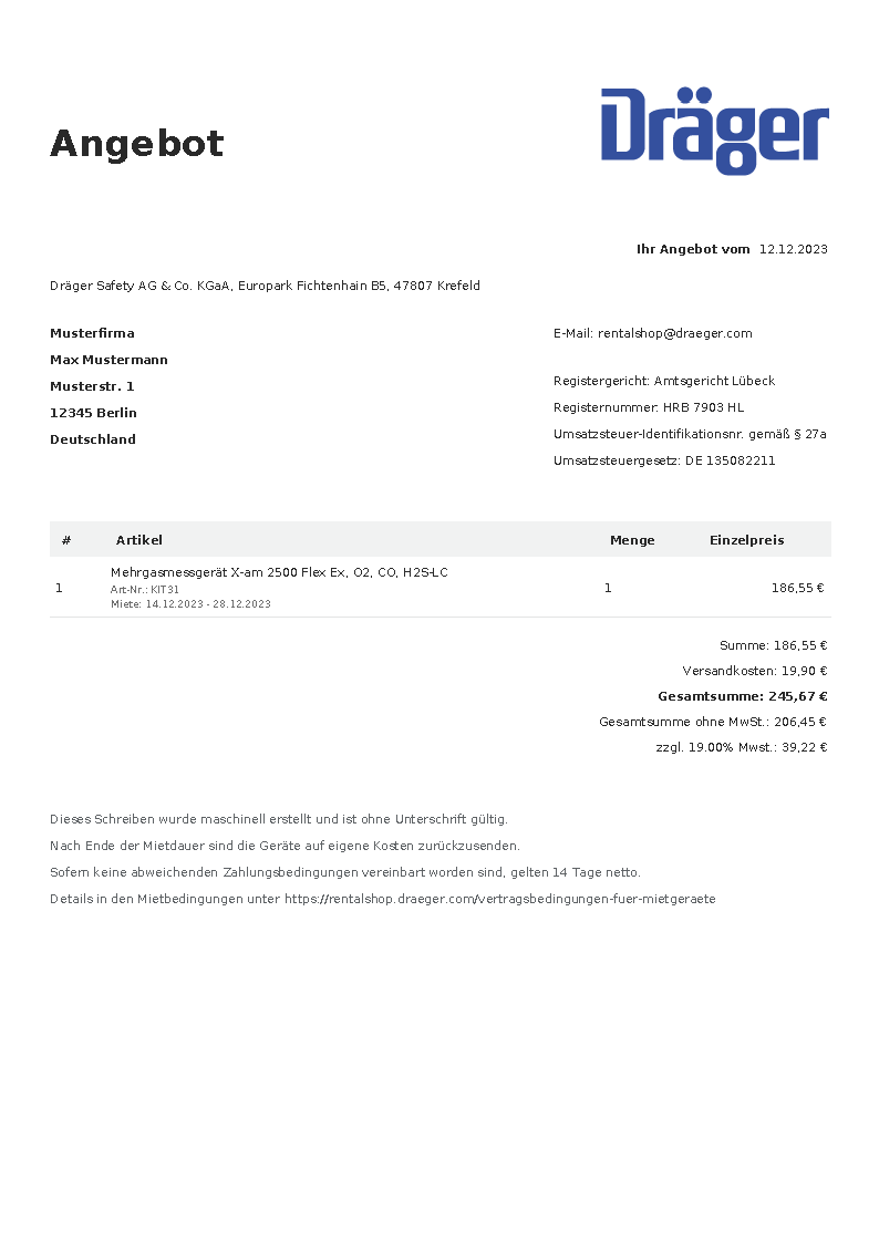 Wenn Sie ein Kundenkonto bei uns besitzen, werden Ihre eingespeicherten Daten automatisch auf dem Angebot abgebildet. Sie können aber auch ohne ein Kundenkonto ein Angebot bei uns anfordern.