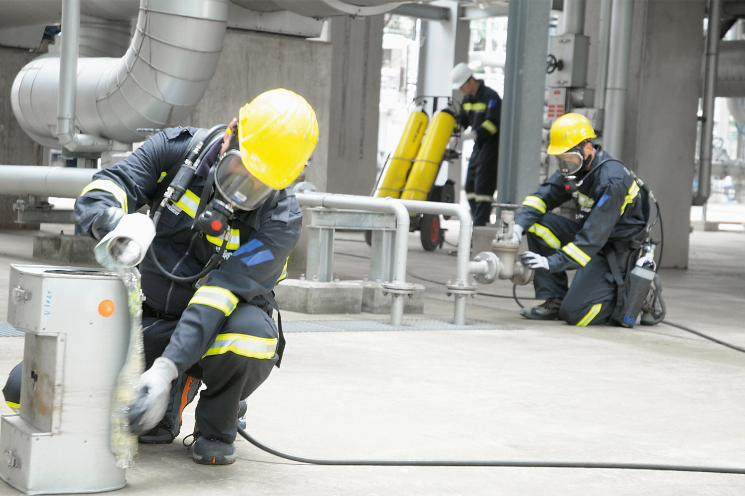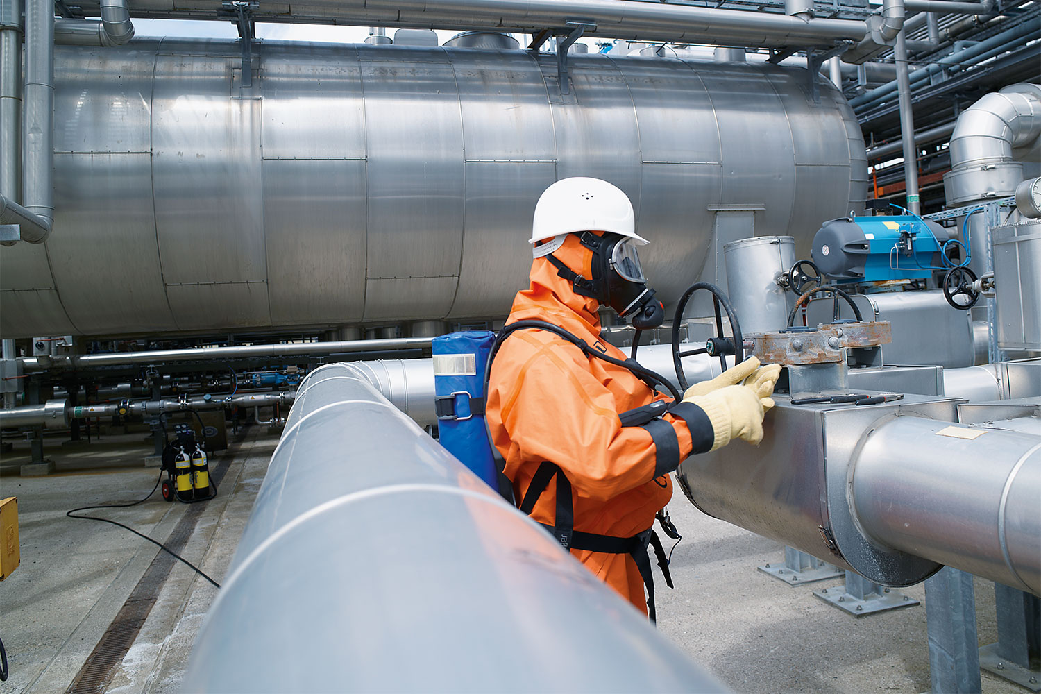 Sicherer Atemschutz bei längeren Arbeiten in gefährlichen Bereichen – mit flexiblen Schlauchsystemen und externer Luftversorgung.